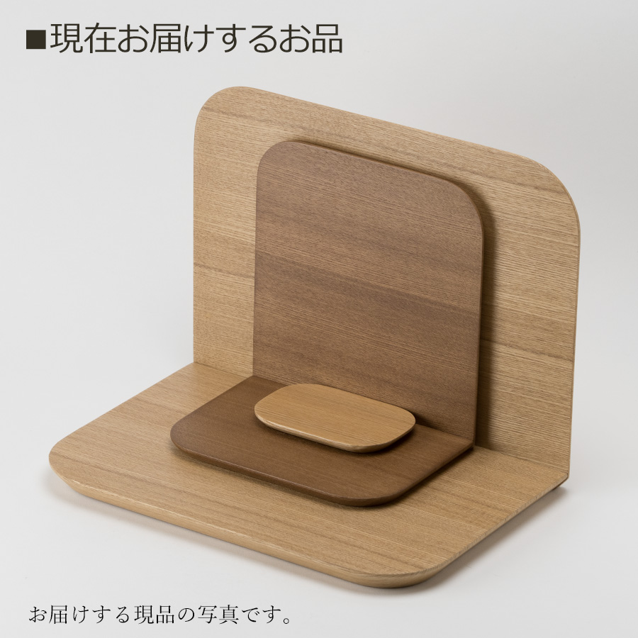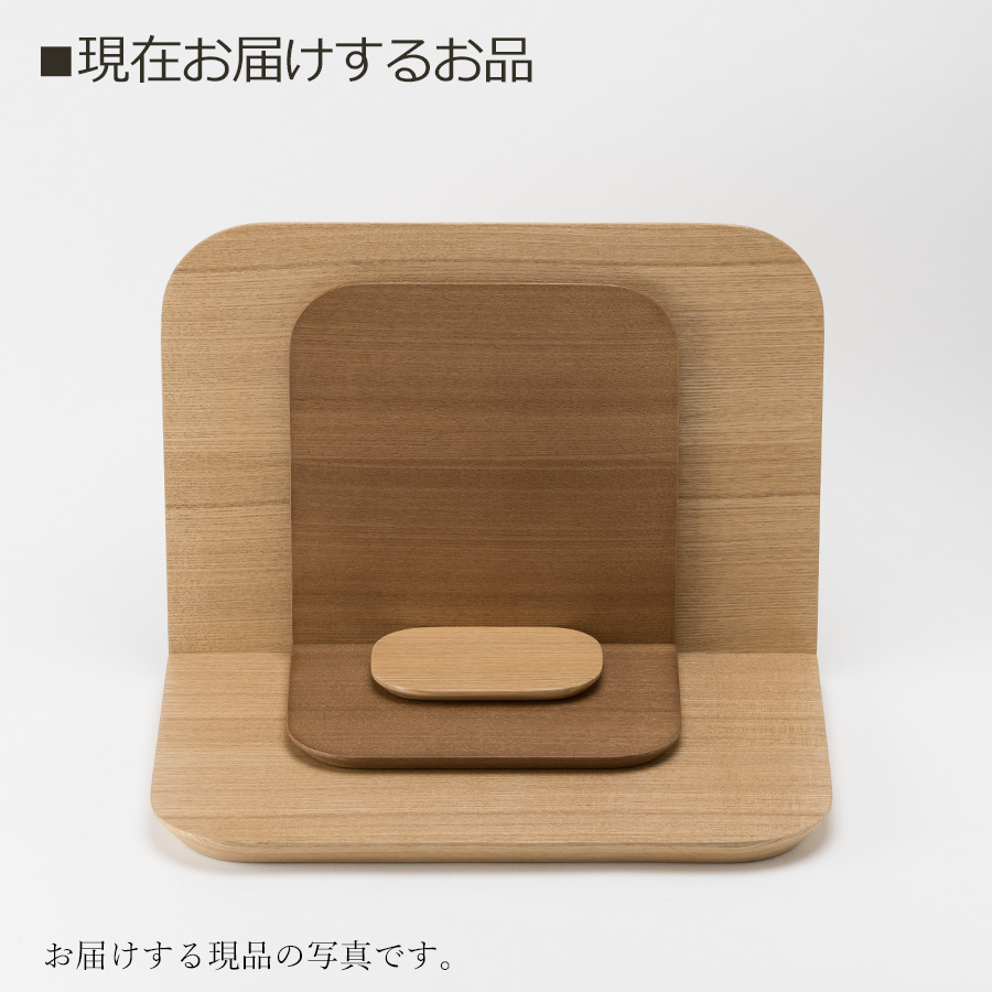 表面にタモ材を薄く貼り合わせてあります。日本のお仏壇メーカーが企画・デザインし、海外(カンボジア)にて製造したお品です。