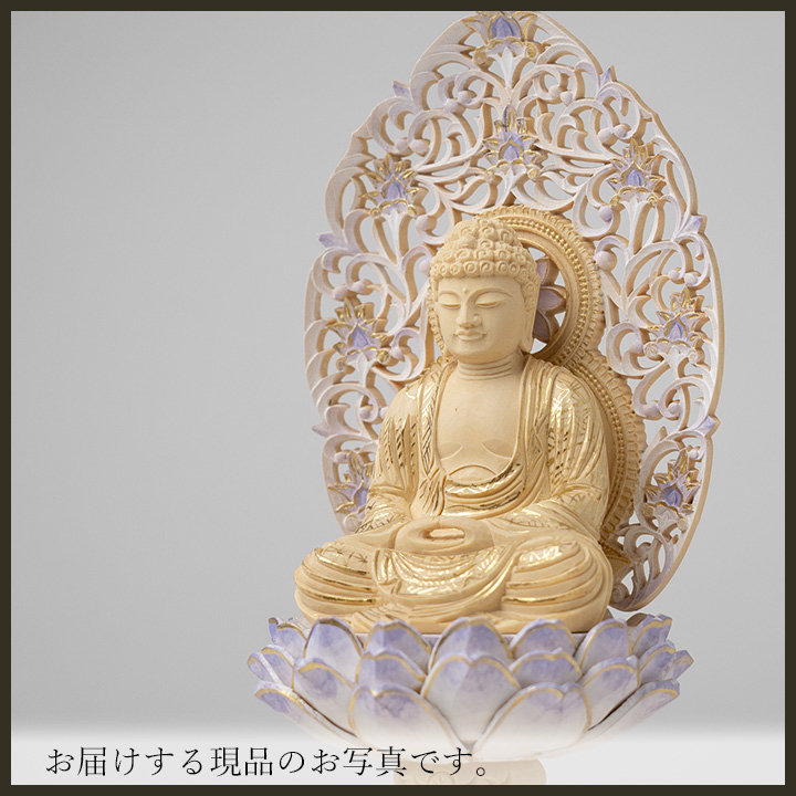 天台宗では、お仏壇へおまつりするご本尊は特に規定がなく、こちらの釈迦如来像(座像)の他に、阿弥陀如来像(座像)等の場合もございます。ご不明の場合はお寺様へご相談下さい。