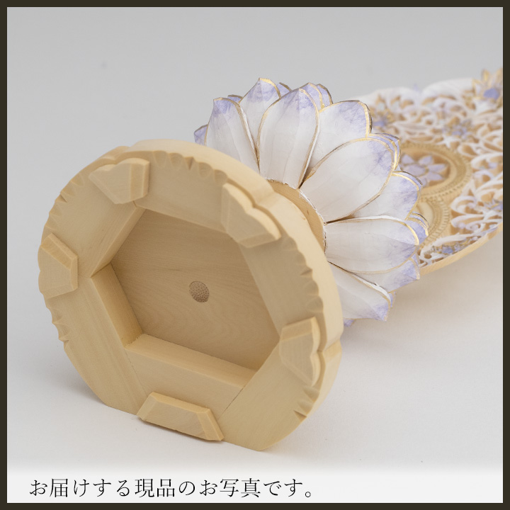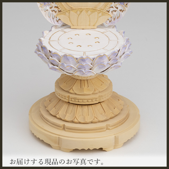 台座は、シンプルな「丸台座」です。六角台座などに比べると低く小さいので、ご本尊をコンパクトにおまつりすることができます。
