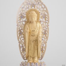 特徴的な彩色は、日本の職人の手によって施されています。 淡い色合いのグラデーションが美しく、ご本尊を柔らかく引き立てます。 アクリル絵の具を用いて、筆で彩色してあります。 耐久性がある、色の変わりにくい塗料のため、 年数が経っても鮮やかなままです。