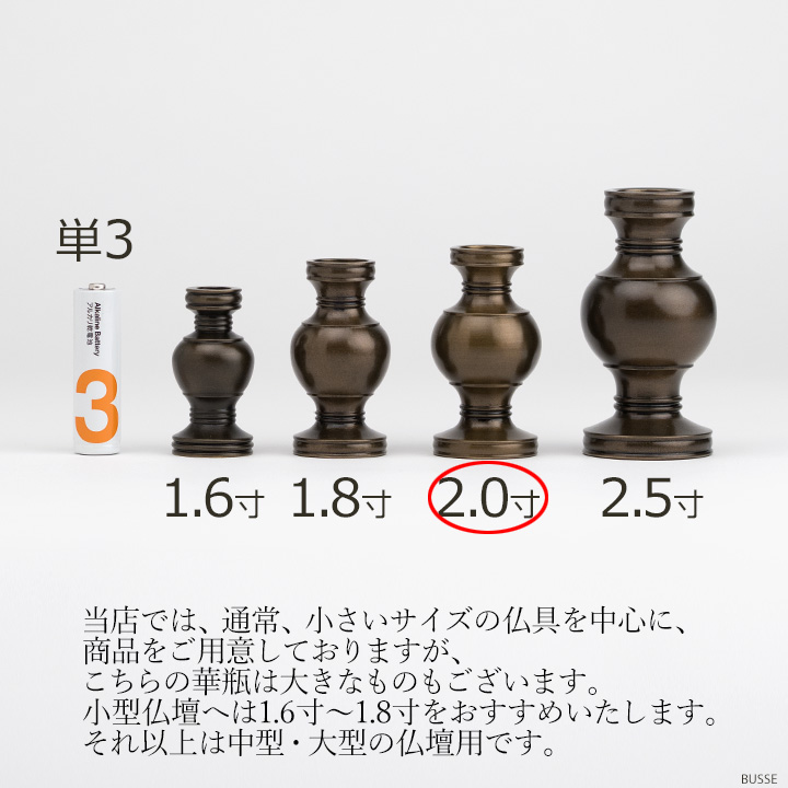 ■華瓶のサイズは、1.6寸から2.5寸までご用意いたしております。