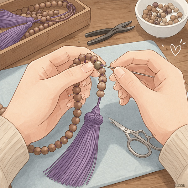 念珠の紐の通し換え。